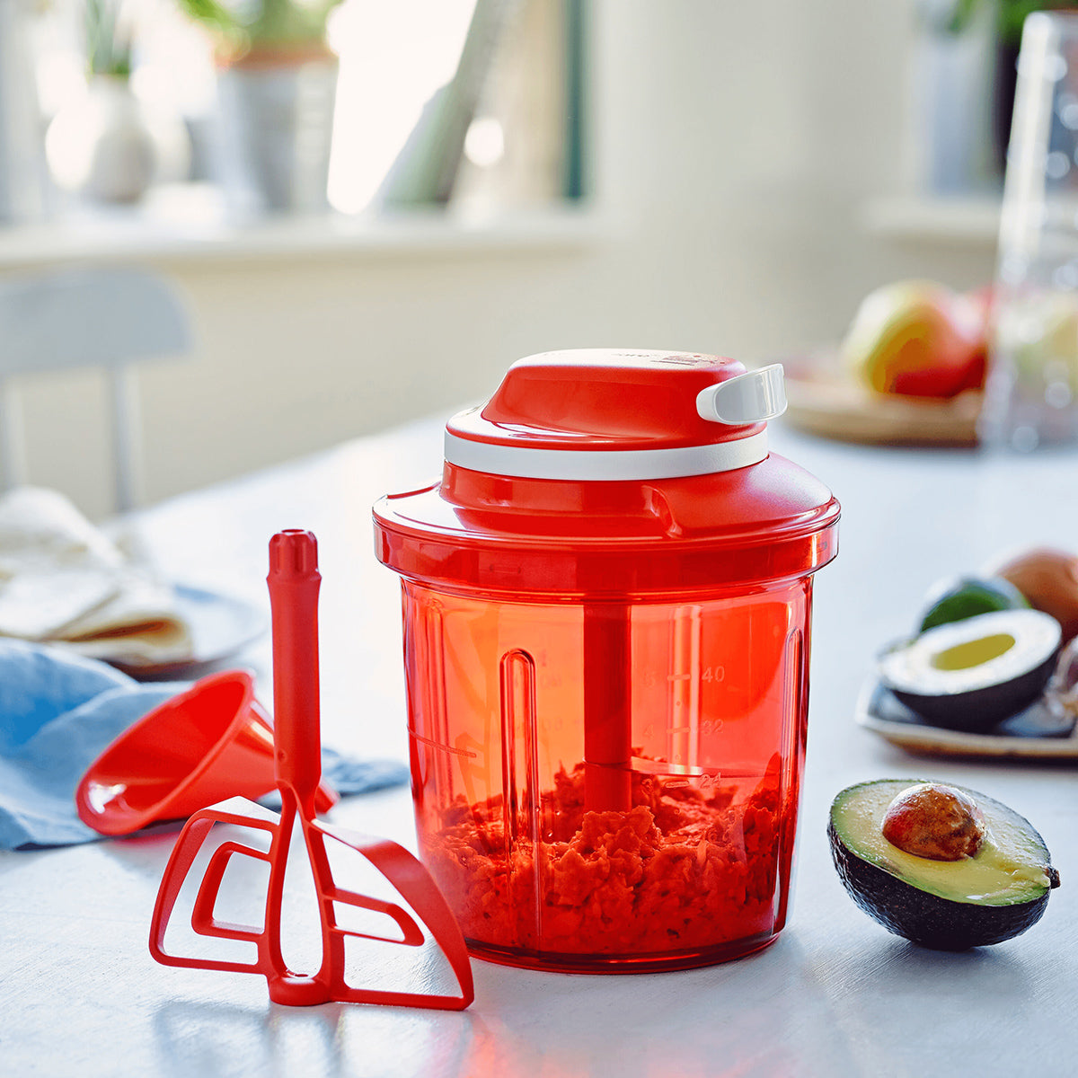 - Compact storage: The SuperSonic Chopper Extra will fit comfortably in any kitchen. All attachments nest into the base for storage.