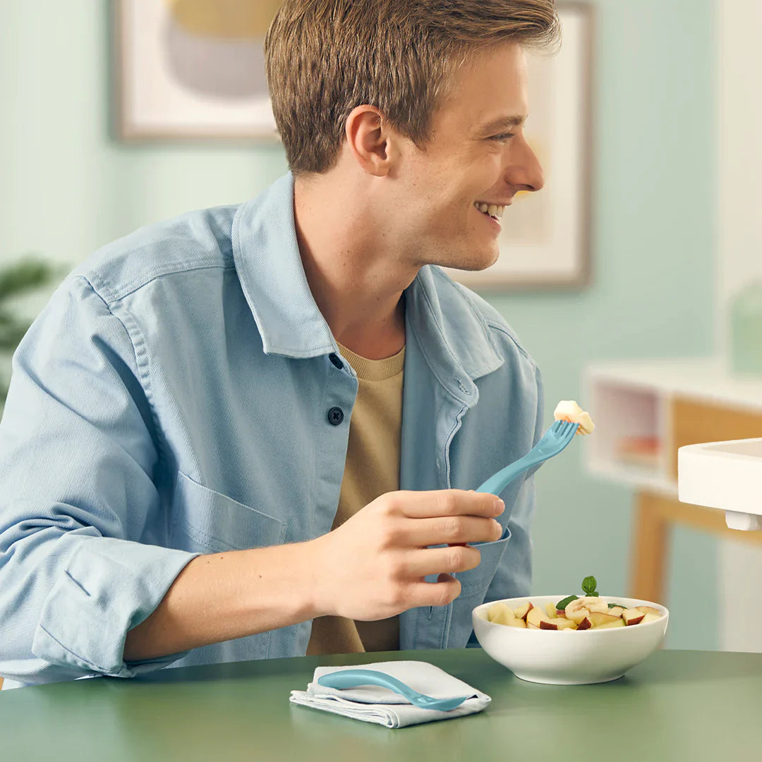 With an ergonomic grip, the right scoop size, and a smooth shape, our cutlery is ideal for parents to start feeding their children with solid foods. As children quickly learn, they can take over and try using the utensils on their own.