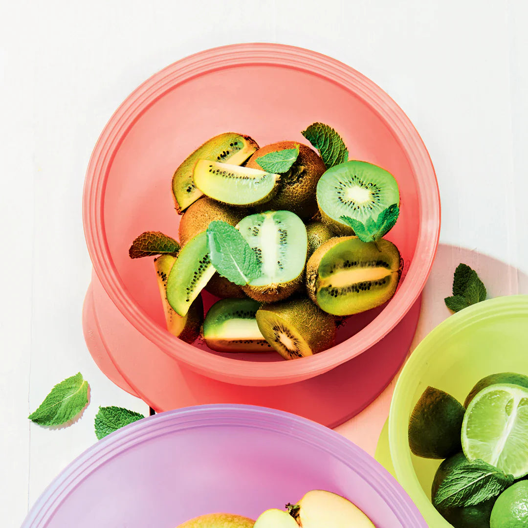 • Stack it! The rim on the top of the seal is designed to fit the bottom of the bowl so you can stack the sealed bowls securely.